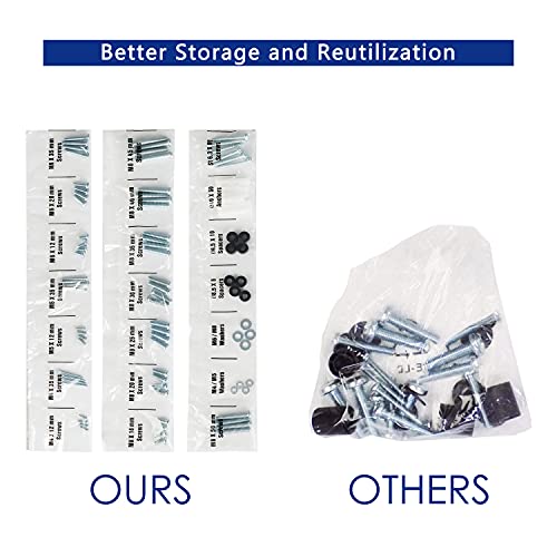 Marchio di classificazione: I nomi e le dimensioni di ogni vite, rondella e distanziatore sono pre-classificati e chiaramente contrassegnati. Potresti facilmente trovare le parti di cui hai bisogno. Ti fa risparmiare molto tempo.
