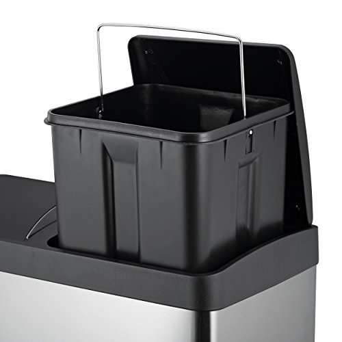 HARIMA Bidone Rifiuti 48L | Bidone In Acciaio Inossidabile A Prova Di Impronte Digitali | Coperchi In Plastica Premium | Pattumiera Estraibile 2 Scomparti Da 24 Litri Per Separare I Rifiuti E Riciclarli Facilmente