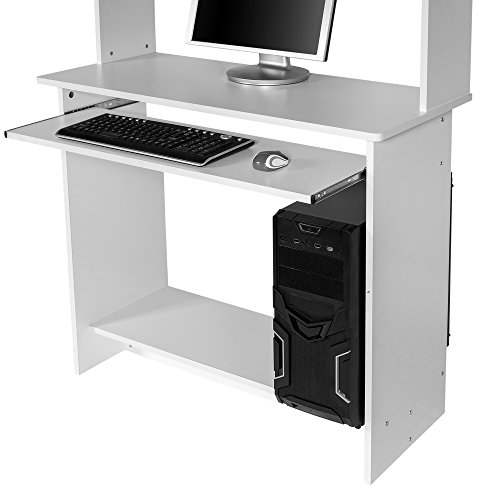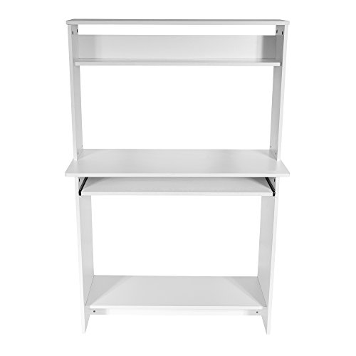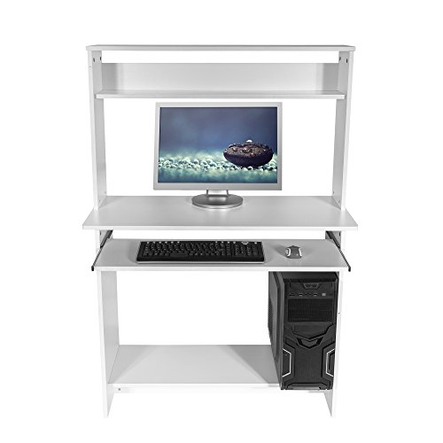 Harima - Rialto Scrivania Angolare Professionale da Tavola Ufficio con per Computer, coloure Bianco, Postazione di lavoro dotata di mensola estraibile porta Scaffale Ripiani Tastiera Scorrevole PC desktop di casa