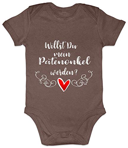 HARIZ Baby Body a maniche corte Willst Du Mein Patenonkel Werden zie, con scritta in lingua tedesca "Patenonkel", compleanno per nascita, con biglietto di auguri di compleanno, colore marrone