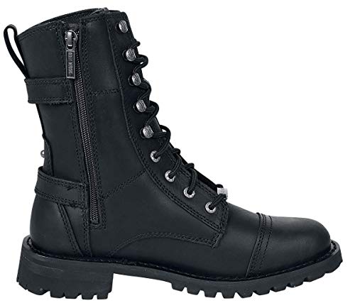 Stivali da donna Harley-Davidson BalsaQuesti stivali in pelle da donna sono ispirati alla moto, con un tocco distintamente ereditato. La Balsa Harley Davidson nera ha un look urbano e una sensazione ribellente. Questi stivali presentano una tomaia in pelle pieno fiore e una chiusura lampo YKK all'interno. Questi stivali con lacci offrono un look da motociclista distintivo.