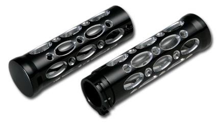 HARLEY DAVIDSON - Manubri - Manopole manubrio Ness-Tech • Lavorate in alluminio billet 6061-T6 CNC • Finiture cromate, alcuni stili disponibili in finiture anodizzate nere - Per modelli TBW - Descrizione: Ness/Batt Foro rotondo, Nero