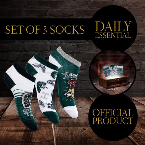 Harry Potter Calzini, Grifondoro Serpeverde Hogwarts Design, Confezione da 3 Calzini per Ragazzi e Adolescenti, Calzini Corti, Taglia EU 23/26 - Verde