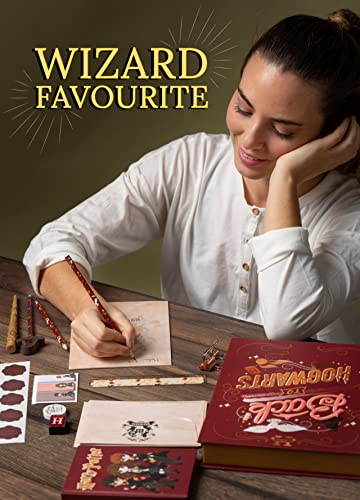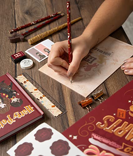 Harry Potter Set di Cancelleria, Set da Scrittura Hogwarts, Include Taccuino, Buste, Carta, Adesivi, Penna a Bacchetta, Graffetta, Gomma, Temperamatite, Scatola