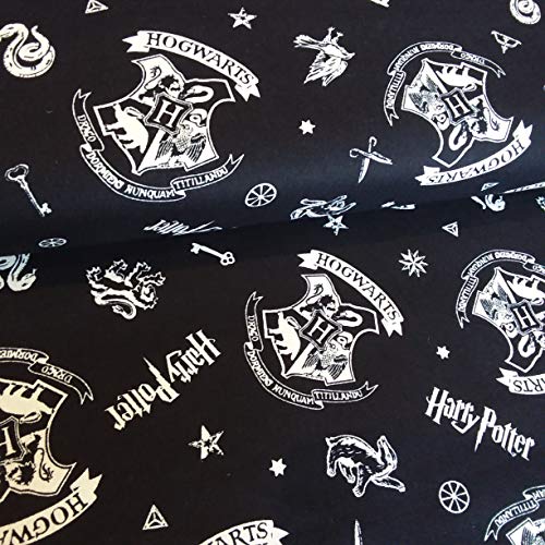 Harry Potter Hogwarts Logo Nero Cotone Tessuto, 110cm Ampio Al 50cm