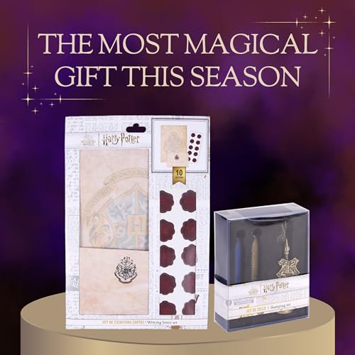 Harry Potter Set da Scrittura, Lettere e Sigilli in Cera, Include Sigillo in Metallo, 2 Bastoncini in Cera, 10 Lettere e Buste Ufficiali di Hogwarts (Blu)