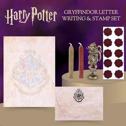 Harry Potter Set da Scrittura, Lettere e Sigilli in Cera, Include Sigillo in Metallo, 2 Bastoncini in Cera, 10 Lettere e Buste Ufficiali di Hogwarts (Rosso)