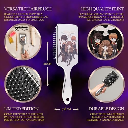Harry Potter Spazzola per Capelli, Pettine di Hogwarts, Accessori per Capelli Ragazze, Spazzola Districante, Spazzola Antistrappo, Regalo per Ragazze, Adolescenti e Donne (Grigio)