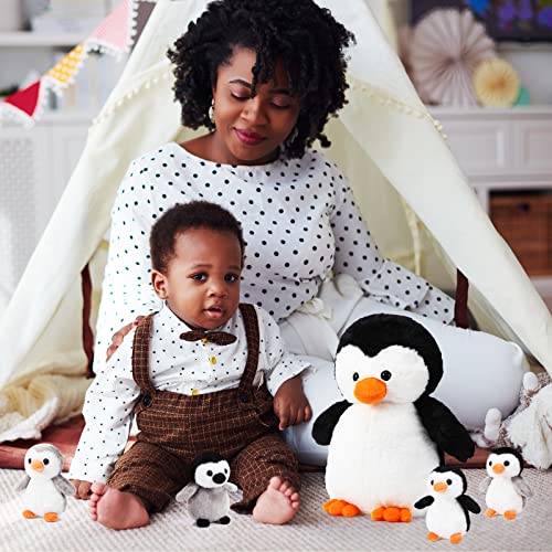 Informazioni sul pacchetto:: riceverai un totale di 5 pinguini imbottiti, tra cui 1 pinguino madre, alto circa 13,78 pollici/ 35 cm, e 4 piccoli peluche a forma di pinguino carini colorati diversi, alti circa 4,72 pollici/ 12 cm, che sono carini, vivaci e facili notare