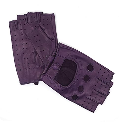 Harssidanzar Donna Guanti da guida in pelle senza dita da Mezzo dito sfoderato in montone GL012,viola,taglia S