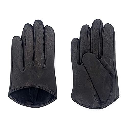 Harssidanzar Guanti corti a metà palmo in pelle di agnello da donna Touchscreen sfoderato GL011EU,Nero,taglia XL