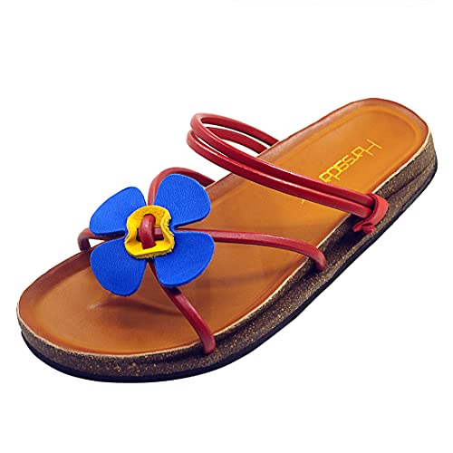 Harssidanzar Sandali Slide in Pelle da Donna Aggiornamento Due in Uno GL207, Blu/Rosso,Taglia 37