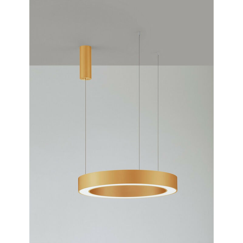 Merano Hartford Plafoniera LED Integrata a Sospensione Ottone Oro Alluminio LED 50W 2733Lm 2700K - 4000K + Telecomando | Finitura: ottone dorato | Materiale: alluminio, acrilico | Classificazione IP: IP20 | Altezza minima: 40 cm | Altezza massima: 200 cm | Diametro: 60 cm | Tipo di lampada: LED integrato | Lampadina inclusa: Sì | Dimmerabile: Sì | Kelvin: 2700-4000 K | Lumen: 2733lm | Peso: 5,8 kg | Potenza (massima): 50W