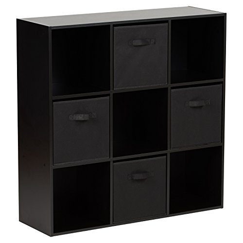 Hartleys, mobile nero con 9 scomparti a forma di cubo e 4 contenitori.
