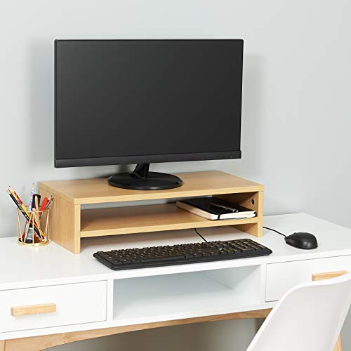 Hartleys - Rialzo per monitor a 2 ripiani effetto legno, disponibile nelle finiture in noce, faggio o rovere