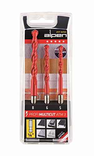 Alpi hartmetall-trapano multiuso Profi Multicut, 0,64 cm esagonale-cilindro, diametro 5/6/8 mm, L 100/120 mm come 3-pezzi Set in scatola di plastica cassetta, 100803100