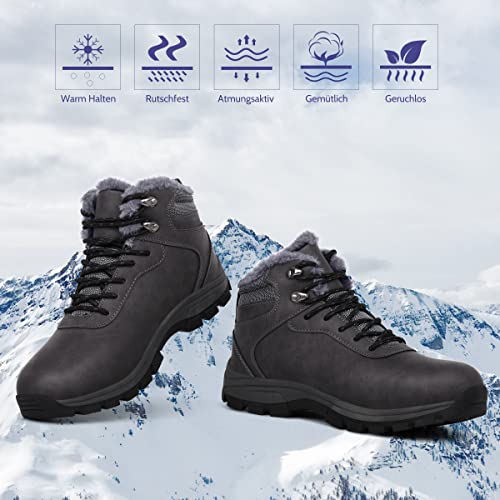 Harvest Land Stivali Uomo Invernali Stivali da Neve Stivali da Escursionismo Caldi Stivaletti Uomo Antiscivolo Trekking Scarpe Scarponcini Impermeabili,Grigio Scuro 45EU