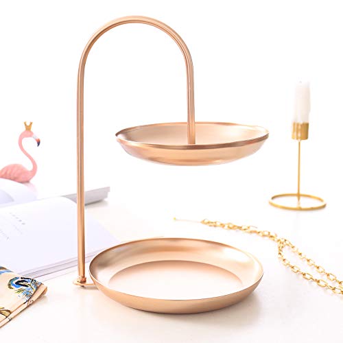 HARVESTFLY - Vassoio per gioielli a doppio strato, in acciaio inox, vassoio in metallo, per anelli, collane, piccoli gioielli, asciugamani, profumi
