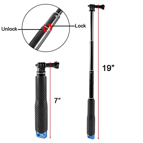 Harwerrel Bastone Selfie Telescopico Alluminio Monopiede Palo Selfie Stick (7-19 Pollici) per GoPro Hero (2018) Hero 7 6 5 4 3+ 3 2 1 SJ4000 SJ5000 Xiaomi Action Cameras