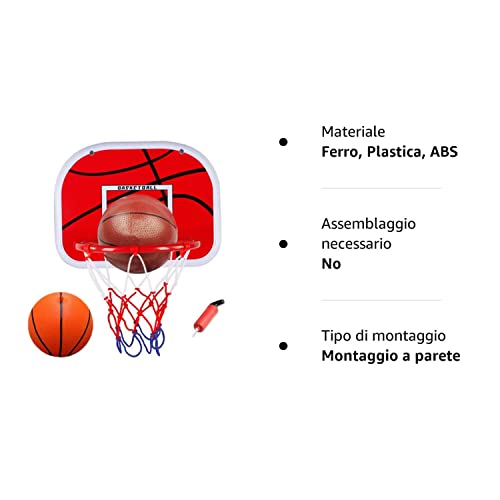 【DIMENSIONI】: Canestro basket (LxH): 38x29cm/14. 96x11.41inch. Pallacanestro: 16cm/6.29 pollice. Diametro del cestello: circa 25 cm/9.84 pollice. Tabellone basket compreso con in pompetta, 2 × palla.