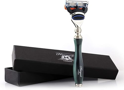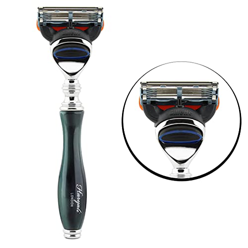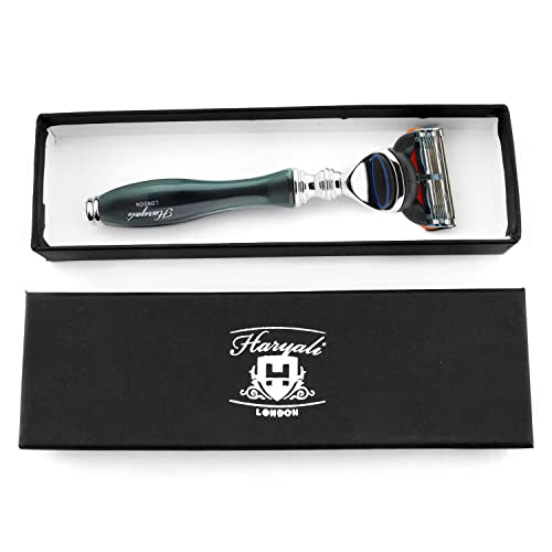 Haryali London - Rasoio da barba a 5 bordi con manico in resina, rasoio di sicurezza per barba e baffi, perfetto regalo di Capodanno