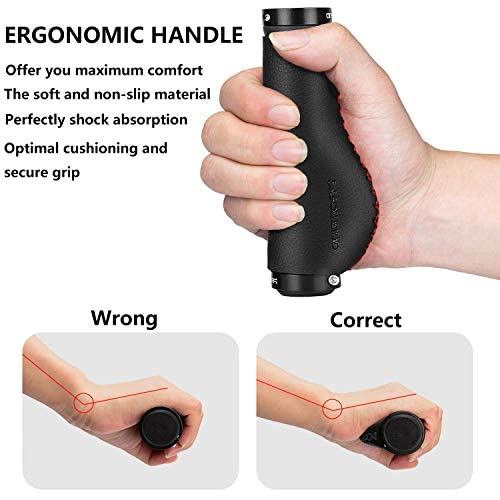 Manico dal design ergonomico, design antiscivolo, riduce la pressione sul palmo della mano, il senso del tatto delle mani sarà davvero fantastico. Facile da montare, montaggio semplice e stabile sul manubrio grazie al fissaggio a vite. Non preoccuparti di perdere o cadere. Chiusura su entrambi i lati, sicura e confortevole.