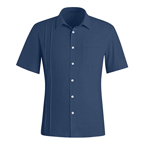 Hasagimol Camicia estiva da uomo a maniche corte, in lino, estiva, a maniche corte, per il tempo libero, casual, leggera e traspirante, blu navy, M