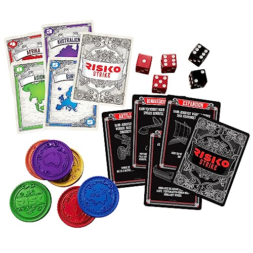 RISCHIO COME GIOCO DI CARTE E DADI: il gioco veloce per dominare il mondo! Con il gioco di carte e dadi Risiko Strike si può ottenere senza tabellone e si può sperimentare il rischio in un modo nuovo