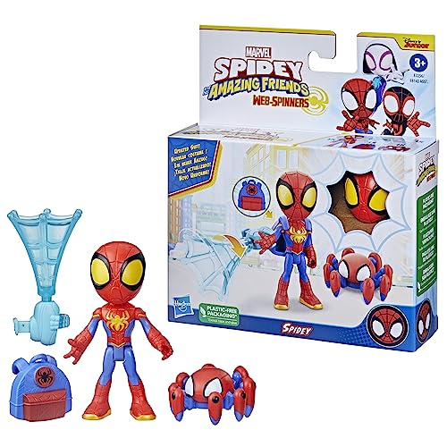 Hasbro Marvel, Spidey e i Suoi Fantastici Amici, Action Figure Web-Spinners Spidey con Accessori, Accessorio spara-ragnatele
