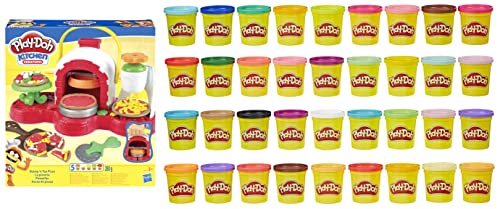Hasbro Play-Doh- Play-Doh Mega Pack da 36 Vasetti, 36834F02 & Play-Doh Pizzeria (playset con 5 vasetti di pasta da modellare), Multicolore