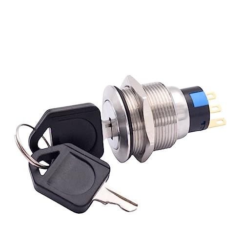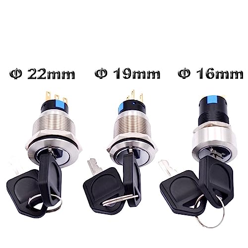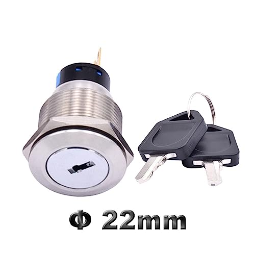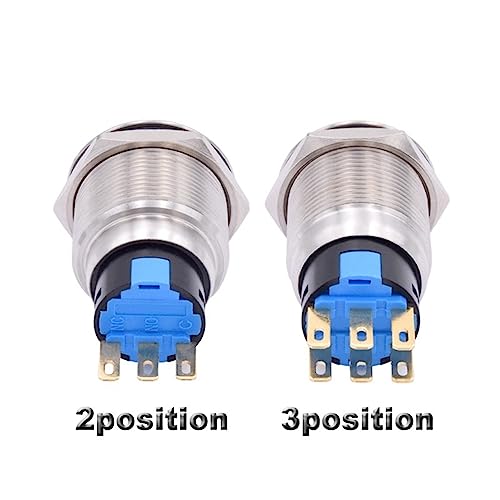Hasmi 16mm 19mm 22mm selettore a Chiave Rotante in Metallo 2 3 Posizioni Interruttore di Blocco a Pulsante in Acciaio Inossidabile a Scatto 1NO1NC 1 pz (Color: 22mm, Size: 2 Position(3 Pins))