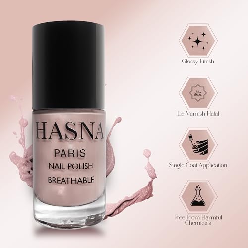 HASNA PARIS - smalto per unghie Halal - Eco responsabile - Lucentezza e lunga tenuta - Facile da applicare - 6ml (ROSA PERLATO)