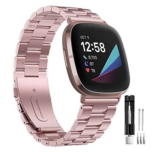 Hatolove Cinturino Fit Bit Versa 3, Cinturino Fit Bit Sense, Cinturino in Acciaio Inossidabile in Metallo Cinturino per Compatibile con Fit Bit Versa 3, Sense per Donna Uomo