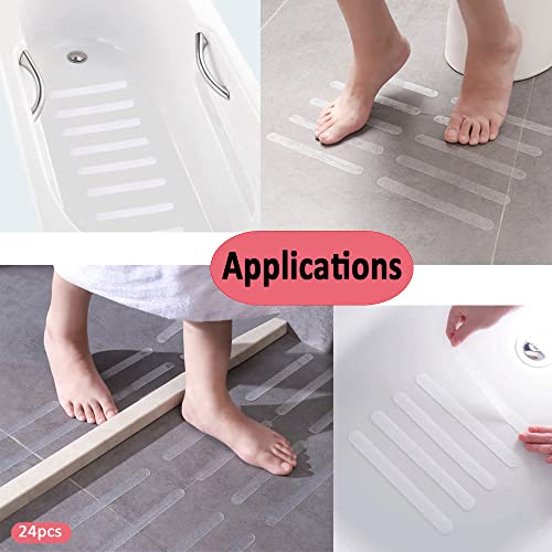 HATOOLHA 24 strisce antiscivolo, antiscivolo per vasca da bagno, antiscivolo, per pavimenti doccia, scale, piscine, con raschietto (rosa)