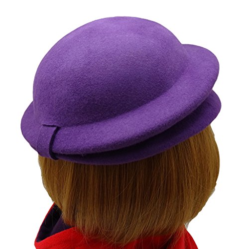 HATsanity da Donna Annata Feltro di Lana Morbido Folded Tesa Modisteria Hat Pillbox Viola
