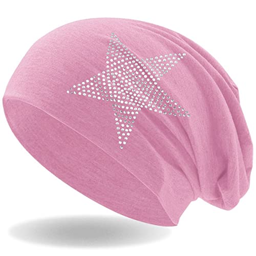 Hatstar Cuffia da donna con strass a forma di stella, elasticizzata, con elegante applicazione di strass, leggera e morbida Colore: rosa. Taglia unica