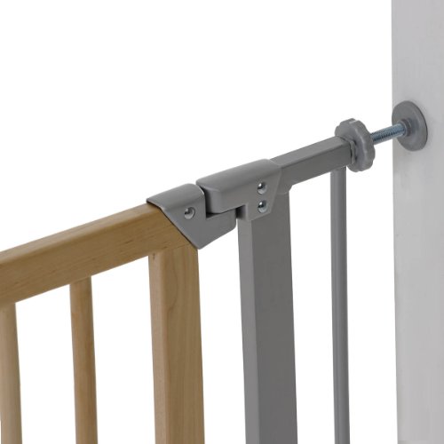 Hauck Deluxe Wood and Metal Cancelletto di Sicurezza in Legno e Metallo 75-81 cm, Fissaggio a Pressione e Senza Fori, Compatibile con Estensione di 7 cm e 14 cm, Grigio Marrone