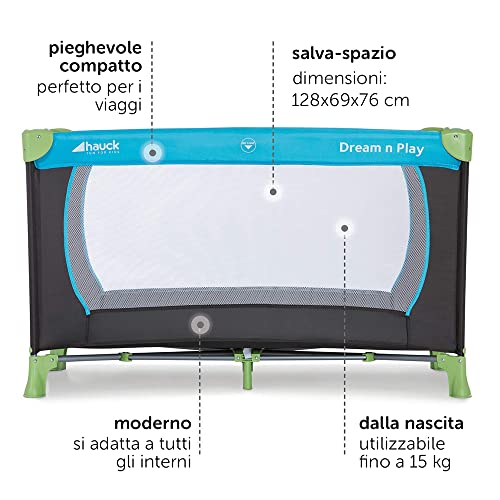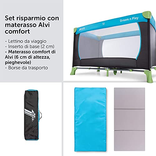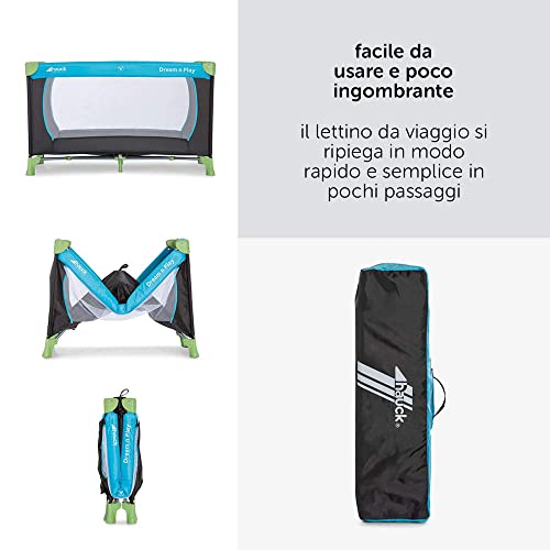 Hauck Set Dream n Play Culla da Campeggio con Materasso Incluso - Lettino da Viaggio Neonato Pieghevole con Borsa - Blu Acqua
