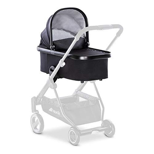 Hauck Navicella per Passeggino Apollo - Dalla Nascita fino a 9 kg con Soffice Materasso Incluso - Stabile, Pieghevole, Grande Cappotta Parasole - Nero