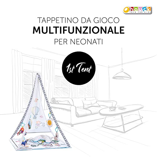 Hauck Palestrina Neonato 1st Tent - Tappeto Gioco Bambini Imbottito da 0 Mesi - Tenda Bambini con Arco Gioco, 5 Accessori e Cuscino - Stimola Apprendimento e Abilità Sensoriali - Fantasia Bianco