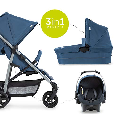 Hauck Passeggino Trio Rapid 4 Plus Trioset - Passeggino Trio Modulare con Ovetto Neonato, da 0 Mesi fino a 25kg - Carrozzina per Neonati con Materasso, Pieghevole, Regolabile e Reclinabile - Blu