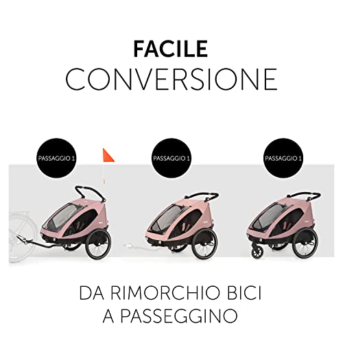 Hauck Rimorchio Bici Bambini 2 Posti Dryk Duo - Rimorchio Bici con Gancio di Traino, Ruota Ant. e Bandiera - Pieghevole, Vano Portaoggetti XL, Facile da Fissare - Utilizzo come Passeggino - Rosa