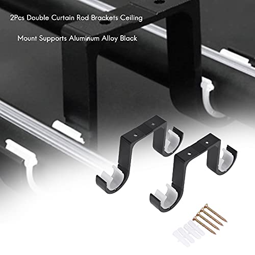 Haudang 2 pezzi Double Curtain Rod Brackets Ceiling Bracket Supports Alluminio Black