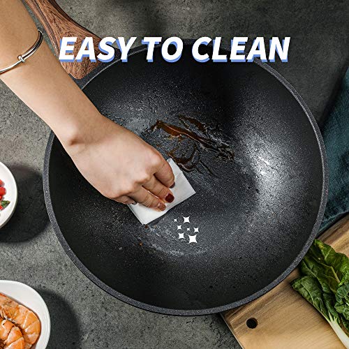 Si riscalda rapidamente e uniformemente: questo wok è resistente e la sua base in acciaio inox rende il riscaldamento rapido e uniforme, ideale per la maggior parte dei piatti per friggere in bocca con frittura.
