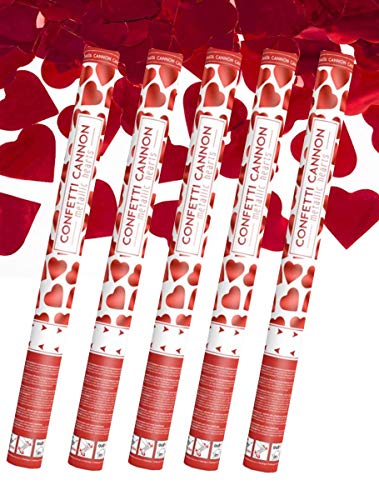 HausderHerzen - Coriandoli a forma di cuore, 60 cm, XXL, cannone per coriandoli, cuori rossi, 5 pezzi