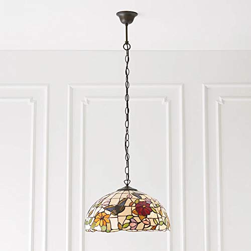 HAUSELIEBE 12 Pollici Tiffany Stile Lampadari, Modello Farfalla Fiore Lampade A Sospensione Tondo Colore Creativo Dipinto Vetro Paralume Lampadario Adatto per Camera Cucina Soggiorno E27