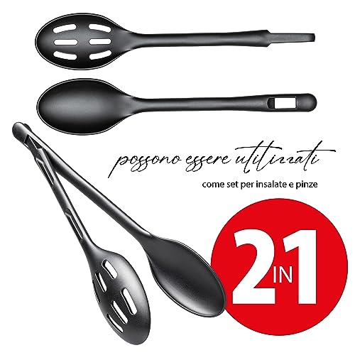 Hausfelder Posate per insalata in due pezzi, posate per insalata e manico in plastica (nero)