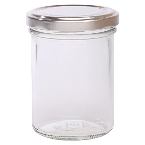 Viva Haushaltswaren - Vasetti in Vetro per marmellate, Salse, ECC., Forma a Campana, 12 Pezzi, capacità: 219 ml, Incluso Imbuto, Colore Tappo: Argento, Colore Imbuto: Giallo