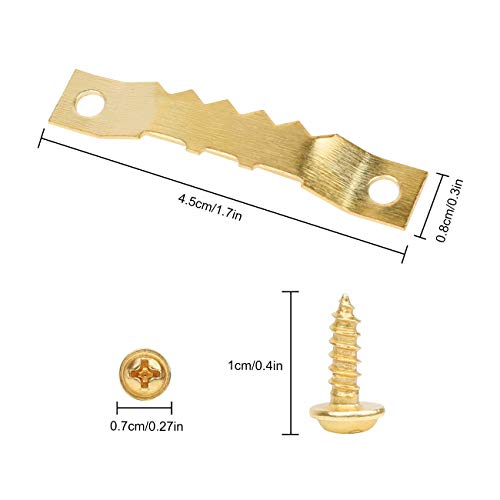 Appendiabiti perfetto per quadri: realizzato in metallo robusto, nichelato, antiruggine, non si rompe facilmente. Inoltre, la scatola contiene 120 ganci per denti da sega da 45 x 8 x 4 mm e 240 viti da 3 x 10 mm, una scatola di plastica stabile con molti scomparti che tutto è ben ordinato