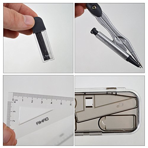 Bussola Kit include: 1 * Graphic bussola, 2 righelli triangolo * * *, 1 righello, 1 goniometro, 1 * matita ricariche, 1 * Eraser.